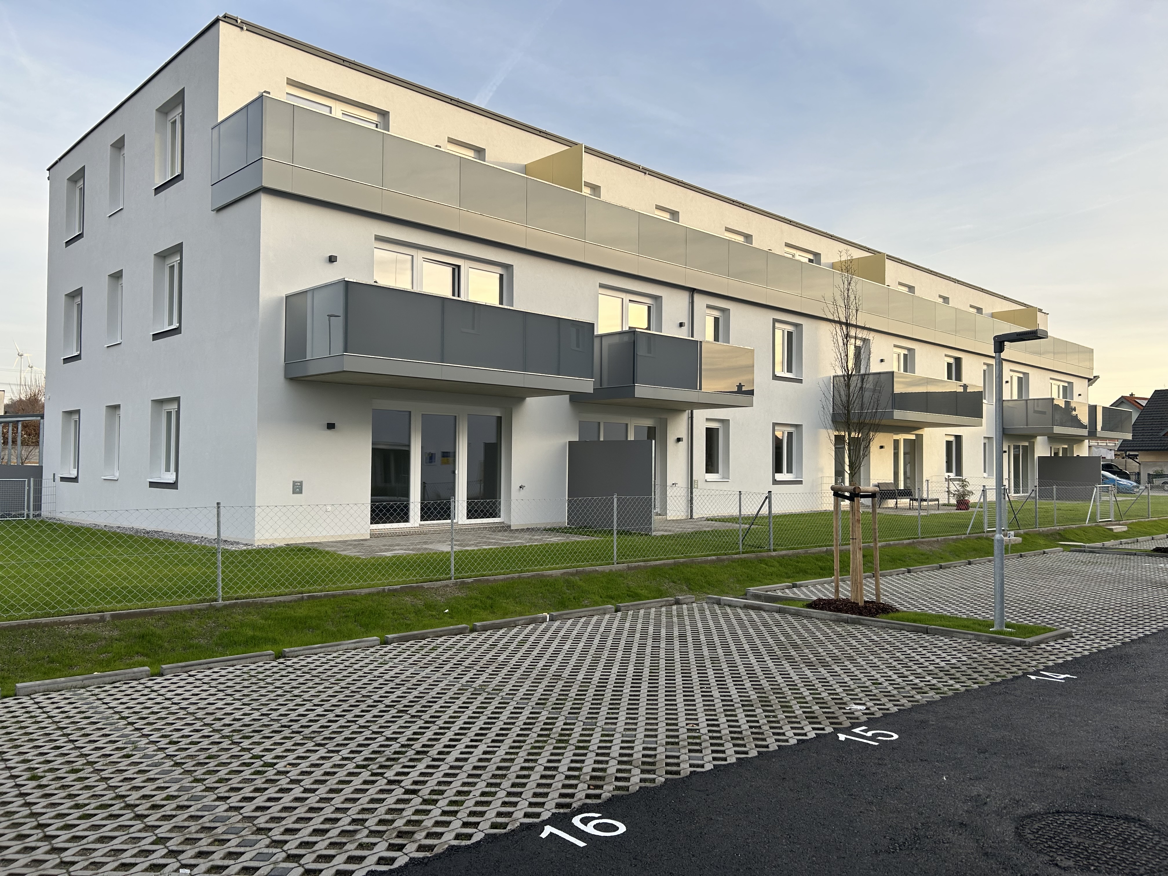 Mit insgesamt 28 geförderten Mietwohnungen ist in Pottenbrunn eine moderne Wohnanlage entstanden, die ganz im Zeichen eines nachhaltigen und klimaresilienten Wohnkonzeptes steht. Die Wohnungen umfassen zwischen rund 50 und 80 m² Wohnfläche und bieten zum Großteil großzügige private Außenbereiche, darunter Eigengärten mit Terrasse, Balkone oder Dachterrassen. Ergänzend dazu stehen insgesamt 42 Stellplätze zur Verfügung.