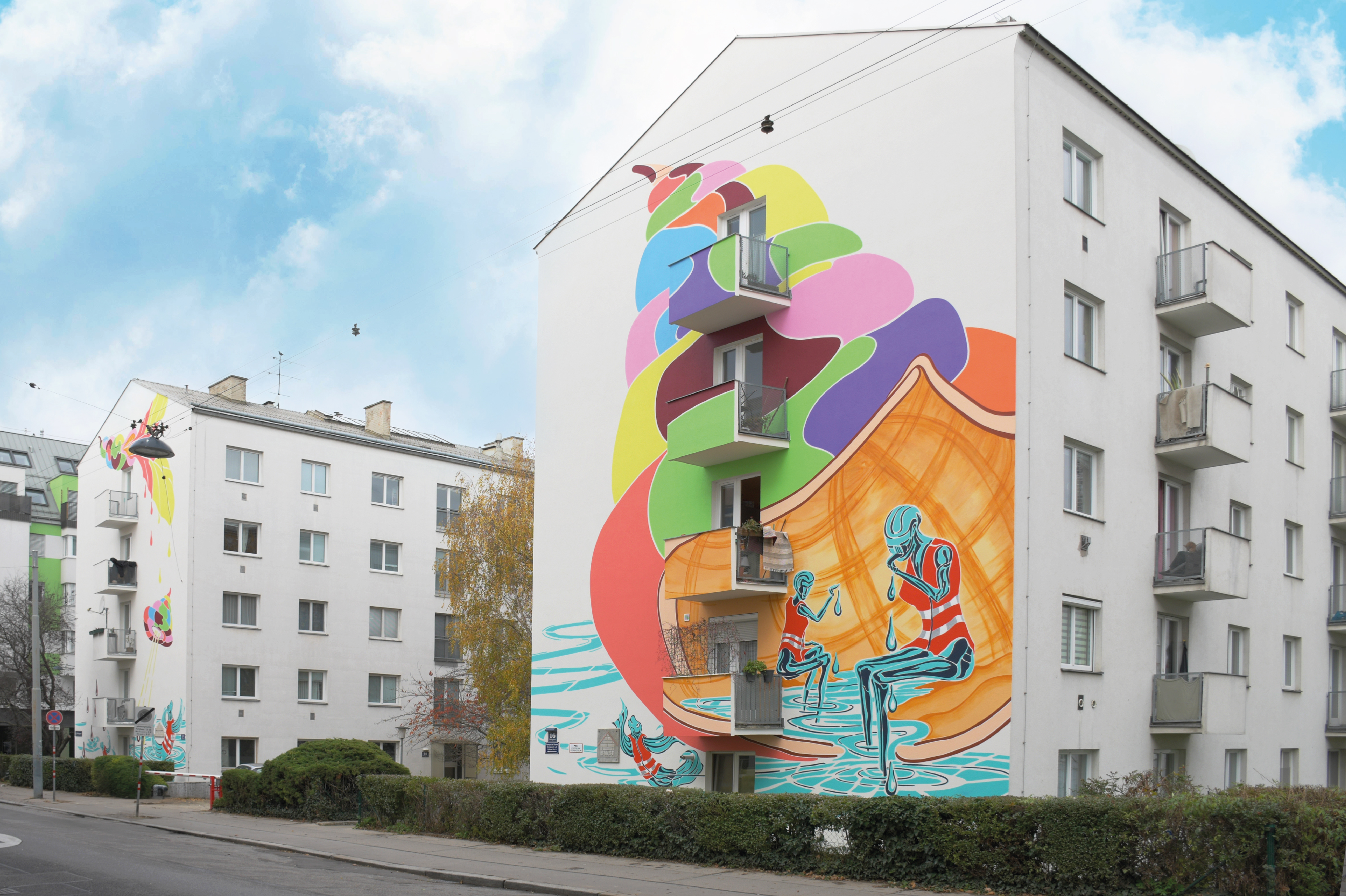 Insgesamt acht Wohnbauten stellt der ÖSW Konzern renommierten Künstler:innen zur Gestaltung zur Verfügung. Die neue Fassadenkunst wird dabei mehr als visuelle Bereicherung verstanden: Sie steht für eine künstlerische Auseinandersetzung mit gesellschaftspolitischen Themen und soll einen wertvollen Beitrag zur lebendigen Kultur und Identität des jeweiligen Stadtteils leisten. Mit der erfolgreichen Fertigstellung des ersten Kunstwerks in der Pohlgasse in 1120 Wien wurde vor kurzem ein bedeutender Meilenstein erreicht. Die positive Resonanz der Bewohner:innen und die spürbare Aufwertung des Wohnviertels bestätigen den Erfolg des Projekts.