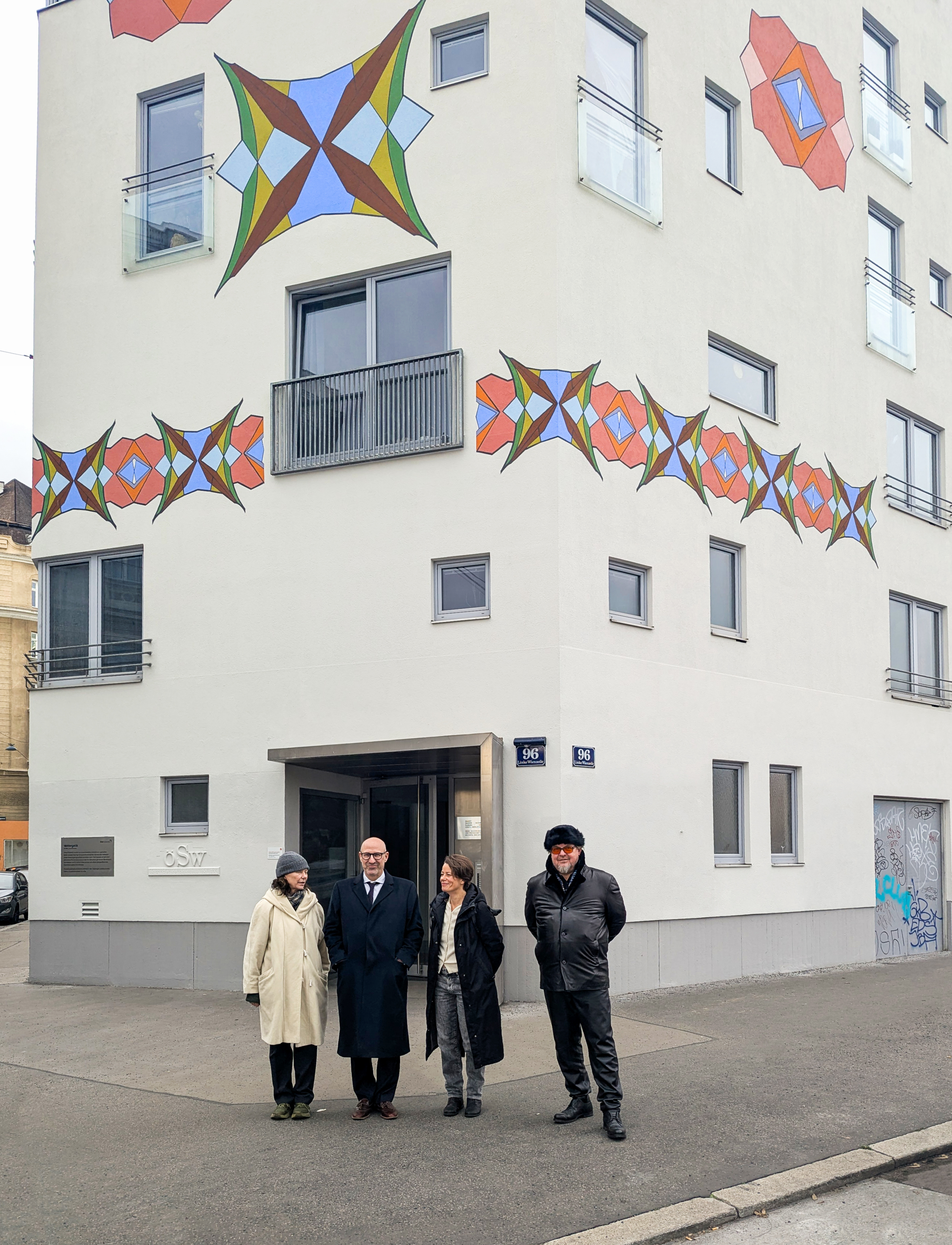 Der ÖSW Konzern setzt mit einer Fassadenkunst-Reihe ein sichtbares Zeichen für gesellschaftlich relevante Themen: Insgesamt acht Wohnbauten in Wien werden von Künstler:innen gestaltet, um den urbanen Raum nicht nur optisch zu bereichern, sondern auch inhaltlich zu beleben. Die Fassadenkunstwerke sollen als künstlerische Auseinandersetzung mit gesellschaftspolitischen Themen verstanden werden und zur kulturellen Vielfalt des jeweiligen Stadtteils beitragen. Mit dem Kunstwerk „Vektorgotik“ am ÖSW Wohnhaus in der Esterházyhasse 2 in 1060 Wien wurde nun das zweite Projekt dieser Reihe in Kooperation mit Kunst im öffentlichen Raum Wien (KÖR Wien) realisiert.